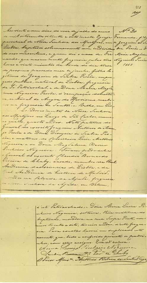 Certidão de nascimento e batismo de Fernando Pessoa